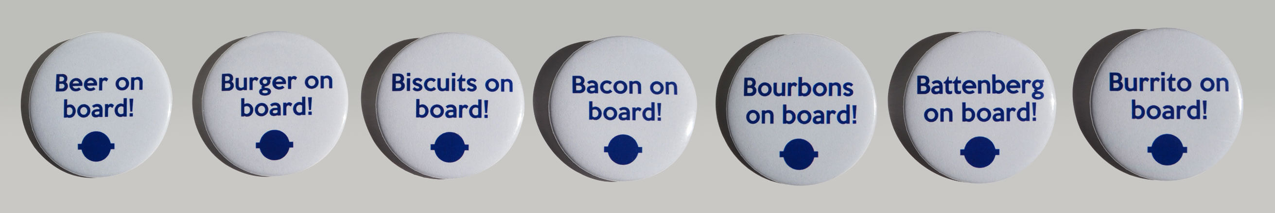 Playing off the 'BABY ON BOARD' badges from TFL - a range of badges for everyone for after lockdown, now that we've all been eating a little more, maybe we've got bumps for other reasons!